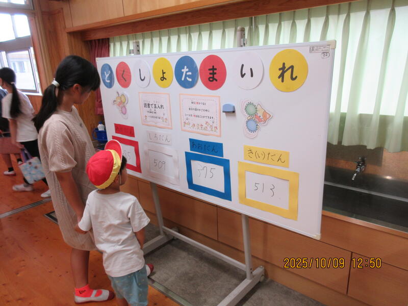 また、図書室では、秋の企画「読書玉入れ」の影響でしょうか。多くの子どもたちが本を借りに来たり、読書をしたりして過ごしていました。