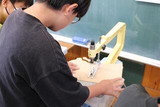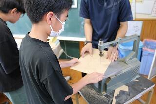 5年生が図工で電動糸のこぎりを使った作品作りに挑戦しました。