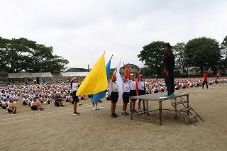 子どもたちは徒走やリレー、団技や表現など、これまでの練習の成果を十分に発揮し、最後まで諦めずにがんばる姿を見せてくれました。 また、応援では、どの団も応援優勝をめざして、気持ちをひとつに熱い応援をすることができました。