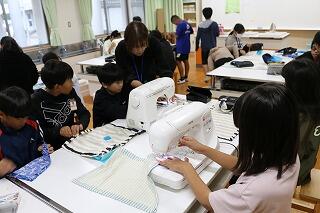 5年生が家庭科でミシンに挑戦しました。しつけ縫いなどで準備した布地を、緊張しながらもミシンで縫い進めます。ご家庭でミシンや手縫いを経験している子もいて、皆、熱心に作業に取り組んでいました。ミシンを操作する時間が、子どもたちにとってとても楽しみな様子が伝わってきました。