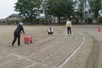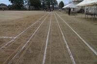 今日の午後、6年生と一緒に準備をする予定でしたが、雨が降ってきたため、雨が上がった後、先生たちだけでテント立てやライン引き、杭打ちなどをしました。