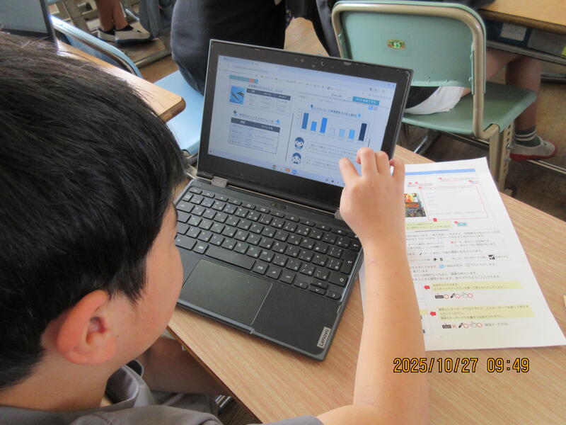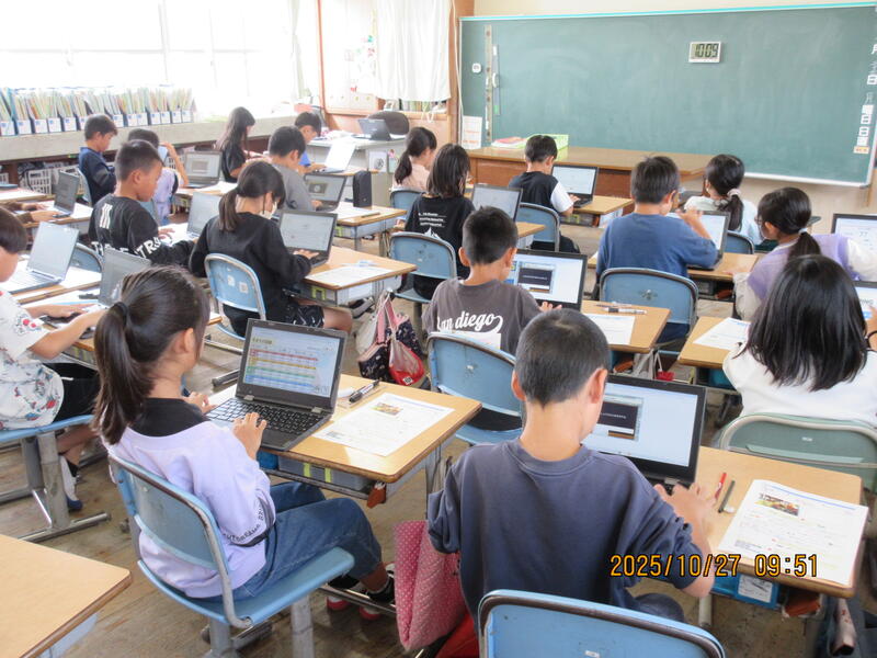 4年生は、「みやざき小中学校学習状況調査」(GIGA端末を活用したCBT方式の調査)を行いました。 この調査を行うことで、日々の授業の成果や、一人ひとりの学びの状況を正確に把握し、今後の指導に活かしていきます。 操作への不安も少しありましたが、4年生は普段の学習の成果を発揮し、キーボードをスムーズに、どんどん打ち込んで問題を解いていました。デジタルでの調査にもしっかりと対応できる姿に、日頃からのICT活用が定着していることを感じました。
