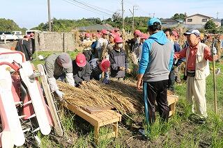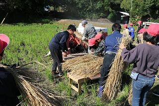 ふるさとの会の皆さんには、稲刈り前に周りの草刈りや干場作りなどをしていただきました。おかげさまで、子どもたちは安心して、楽しく稲刈りを行うことができていました。