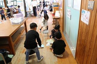 教室に運び終えると、配膳の準備を先生の手を借りずにテキパキと進められる姿は見事です。「おいしくなあれ」と声をかけながら、協力し合って準備する姿は、本当に頼もしい限りです!
