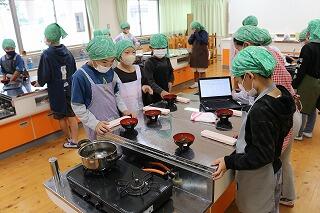 5年生が、待ちに待った調理実習に挑戦しました。メニューは日本の食卓の基本、ご飯と味噌汁です。
