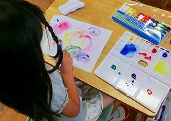 みんな楽しみにしていたようで、色を出したり、筆に水をつけたりするたびに、