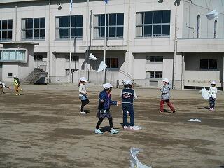 紙コップと竹串、ストローで作ったかざ車を運動場を所狭しと思い思いに走り回っていました。