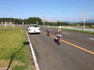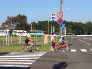 自転車の乗り方や、巻き込みや飛び出しのダミー実験を見せてもらいました。