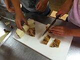次に、自分たちで、包丁を使って、サツマイモを切りました。少しドキドキしました。