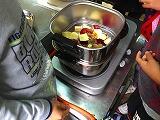 しばらくすると、蒸気がすごくて、みんな思わず声が出ました。15分くらいすると、できあがりました。