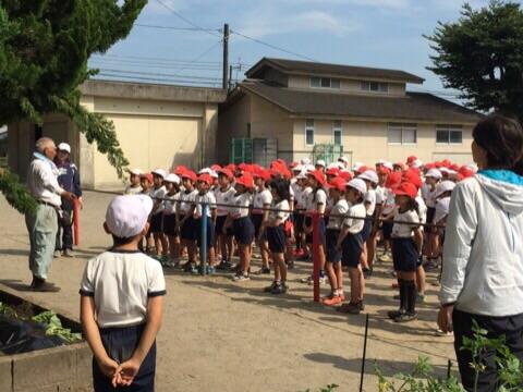 1学期のことですが、総合的な学習の時間の「野菜を育てて食べよう」という単元でさまざまな野菜を植えました。写真はその中のさつまいもを植えた時の写真です。