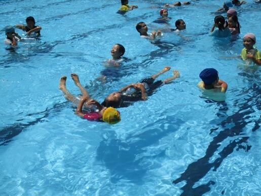 頭の位置、ひじを伸ばす、などなどコツをつかむために、繰り返し練習しています!短い時間の中でみんな一生懸命泳いでいます。子ども達同士で教え合う姿もあって、苦手な子も得意な子もみんな楽しくがんばっています!!