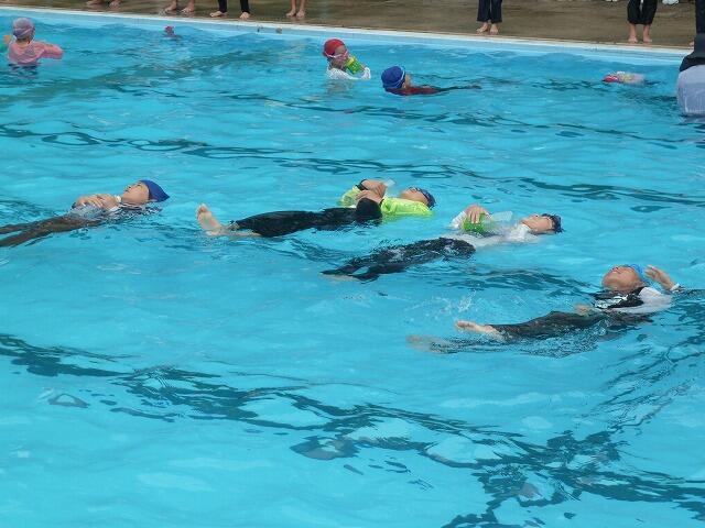 今年は校舎改築の関係で、9月まで水泳がありました。4年生では、水泳授業の最後に着衣泳をしました。着衣のまま水に入ると、体が重くなり、泳ぎにくくなることが分かりました。