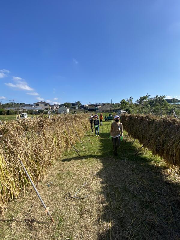 10月14日(金)に稲刈りを行いました。ほとんどの子どもたちは初めての体験だったようで、最初は鎌の使い方などに戸惑いながら稲刈りを行っていました。しかし、だんだんと慣れてきたようで、後半はみんなで協力をしながらテキパキと作業をしていました。今回の稲刈りは、きっと、子どもたちにとって良い経験になったと思います。