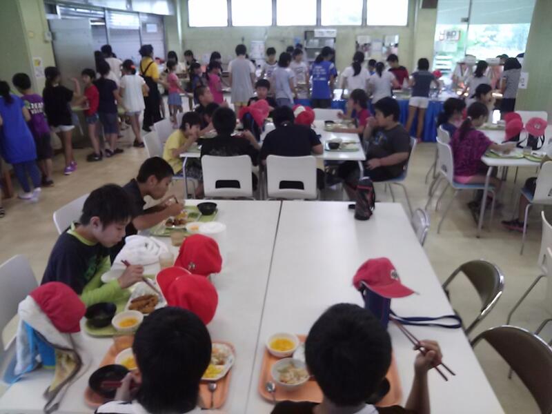 第1日目は、入所式、初めての食事・・・バイキング方式、屋内追跡ハイキング・・・20のチェックポイントを班別にみんなで協力して解答していく活動です。順番に回っていくので解答できないところがあると行列ができます。最後まで回れなく、途中で終わりになりました。