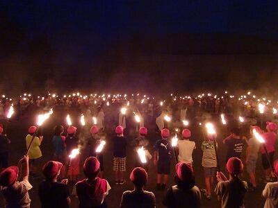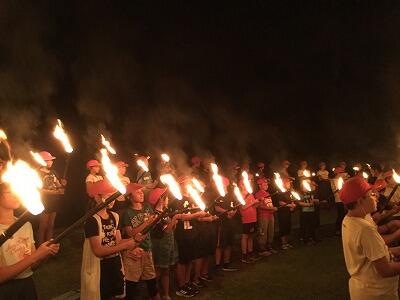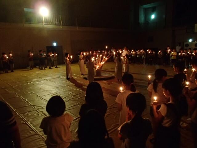 ハイキングの後は、夕食でした。そして、夜は、キャンドルファイヤーでした。大人の私には、ろうそくの光がとてもロマンティックでした?子どもたちにはどんな風に映ったのでしょうね・・・キャンドルファイヤーの後は、入浴、そして消灯・・・1日目が終わりました。