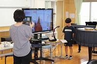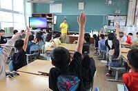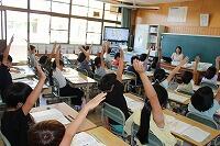 最後に先生から今日学習したことが理解できているかどうかの確認問題がテレビに映し出されると、子どもたちは、手を挙げて発表しようとしていて、学習のめあてを達成できた様子がうかがえました。