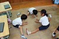 動画を見終えると、握力の強化が必要な子どもたちは、タオルを二人で綱引きのように引っ張り合ったり、体前屈で課題が見られた子どもたちは、ストレッチに取り組んだりしていました。