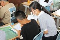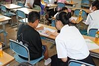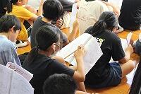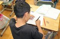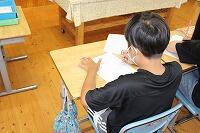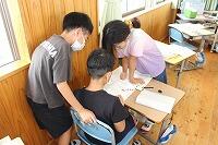 学習会には、本校4年生児童14名が参加し、ボランティアとして五十市中学校や県立都城西高等学校、県立都城農業高等学校などから34名の生徒が参加してくれました。子どもたちは、夏休みの宿題で分からないところを中・高生に優しく丁寧に教えてもらいながら、学習に取り組んでいました。