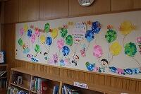 6月は、図書イベント「風船リーディング」が行われ、紫陽花の花が貼り付けられた風船が掲示板に飾られています。紫陽花の花は、下学年は10冊、上学年は8冊読むごとに1枚もらえ、風船に貼っていきますが、子どもたちがたくさんの本を読んでくれたことで、たくさんの風船が図書室に飾られ、図書室を明るい雰囲気にしてくれています。