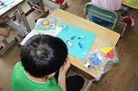 自分で作ったランチョンマットで給食を食べることを楽しみにしているようです。