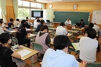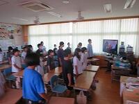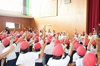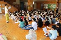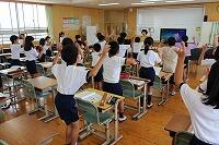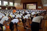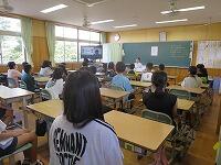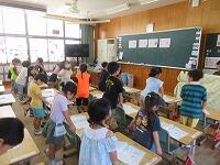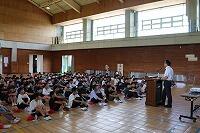 また、式後は、生徒指導主事の先生から、子どもたちが交通事故や水の事故に遭わないように注意することやインターネットの正しい使い方など夏休みの過ごし方について話があり、子どもたちは、しっかりとした態度で話を最後まで聞いていました。