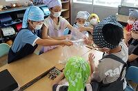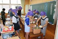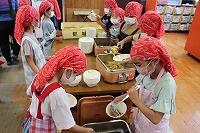 子どもたちは、新しいスタイルで給食当番の活動に一生懸命取り組んでいます。