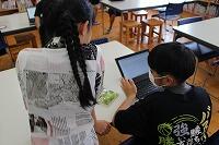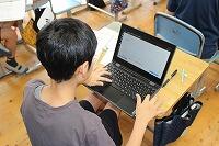 また、4年生は、総合的な学習の時間にタブレットを使って、スライドを作成していました。子どもたちは、「みやだいず」について、これまで自分たちで調べたり、みやだいずに関わっている方々から話を聞いたことを活用したりしながら、内容をまとめていました。