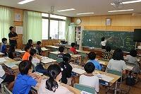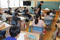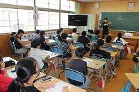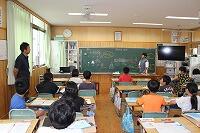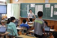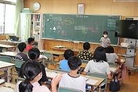 都城市では、「子どもたちが主役の授業」を目指しており、本校でも授業改善に取り組んでいます。今日の授業でも子どもたちが黒板を使って考えを発表して、それを聞いた子どもたちが質問したり、意見を出したりしながら考えを練り上げていました。その間、先生は教室の後方に立って、子どもたちの意見やつぶやきをひろって、子どもたちに問いかけて、グループで積極的に意見交換する姿が見られました。