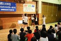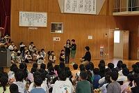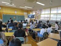 表現集会には、昨年度に発表した5年生や来年度に発表する3年生、そして4年生の保護者の方々が体育館に集まり、1・2・6年生は、教室からオンライン形式で参加しました。