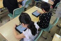 子どもたちは、日頃からタブレット端末を文具として使い慣れていることもあり、Webサイトへのログインや解答入力もスムーズにできていました。