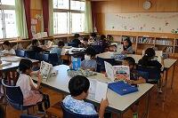 19日(水)に、本年度初めての読み聞かせが行われました。読み聞かせボランティアとして6名の皆さんに、朝の時間、そしてお昼の時間と2回に渡って来校していただき、1・3年全クラスと2・4年の各2クラスの計12クラスで、絵本や紙芝居を使って読み聞かせをしていただきました。子どもたちは、食い入るように見聞きしていて、楽しい時間となりました。