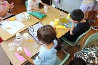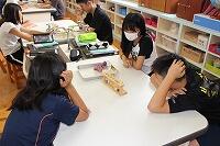 子どもたちは、ビー玉が転がるコースを直線や曲線などを上手に組み合わせながら作っていました。出来上がった子どもたちは、友だちと一緒に上手く転がるかどうか、実際にビー玉を転がして試していましたが、思い通りに転がると喜んでいました。