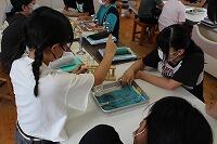 また、5年生は家庭科の時間にランチョンマットを作っていました。子どもたちは、ミシンを使いながら慎重に、そして丁寧に縫っていました。