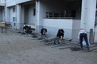 午前10時ごろ音楽部の方々が到着し、楽器や椅子など体育館の準備をしたり、音出しをしたりしながら演奏会に向けてスタンバイをしていました。