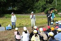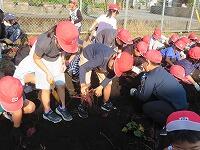 子どもたちは、先生から芋掘りの方法や注意点についての話をしっかりと聞いていましたが、その表情からは「早く、掘りたい」というワクワクした気持ちが伝わってきました。