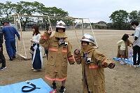 その他にも消防士の装備を着けたり、消防車にも乗ったり、防災クイズ大会をしたりしました。