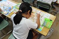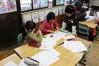 交流会では、ボランティアとして見守っていただいた地域の方々をお招きして、子どもたちが「まち探検」で調べたことを新聞やポスターにまとめ、発表する予定です。子どもたちは、友だちと協力しながら紙面のレイアウトを考えたり、発表原稿を作ったりしていました。子どもたちは、交流会をとても楽しみにしているようです。