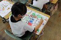 7日(木)に、3年生は図工の時間に光を通して楽しむ作品を作っていました。子どもたちは、切り取った段ボールをトレース紙に貼り付けて、しきりを作り、動物やUFOなど自分の考えたものを表現していました。曲線など難しい部分も、子どもたちは上手に段ボールを貼り付けて、ボンドが固まるまで根気強くじーっと押さえていました。