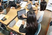 20日(木)に、3年生は総合的な学習の時間に、福祉教育として盲導犬についての調べ学習を行っていました。子どもたちは、どんな犬が盲導犬になれるのか、盲導犬になるまでにどんな訓練をするのかなど、これまで自分たちで調べてきたことを発表するために、タブレットのスライド機能を使ってまとめていました。どんな発表になるか、とても楽しみです。