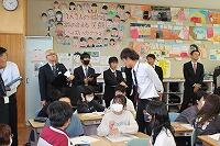 また、5年生の教室では、2年生から5年生へ毎日、給食準備を手伝ってくれたことへの感謝の言葉を伝えて、メッセージカードを渡していました。