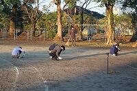 また、ドローン撮影前には、宮崎県土地家屋調査士会の皆様に、5年生児童を対象に出前授業を行っていただきました。子どもたちにとっては、測量器械を使った測量体験や歩測実習など、普段経験することのできない貴重な学習の機会となり、興味深く楽しそうに取り組んでいました。土地家屋調査士会に本校卒業生の方もいらっしゃり、子どもたちは「先輩なんだ」と驚いていました。