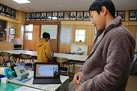 今回の登校日では初の試みとして、タブレットを使ってオンラインで参加する児童もいて、画面に顔が映し出されると学級の子どもたちから歓声があがり、画面を通しての再会を喜んでいました。