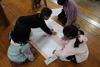 交流会では、ボランティアとして見守っていただいた地域の方々をお招きして、子どもたちが「まち探検」で調べたことを新聞やポスターにまとめ、発表する予定です。子どもたちは、友だちと協力しながら紙面のレイアウトを考えたり、発表原稿を作ったりしていました。子どもたちは、交流会をとても楽しみにしているようです。