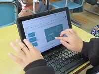 また、3年生の国語の授業では世界の民話についてまとめる活動に取り組んでおり、一人一台端末を自身の考えを表現する道具として積極的に活用していました。