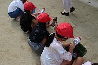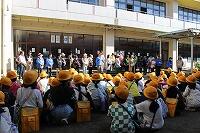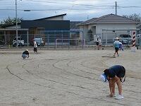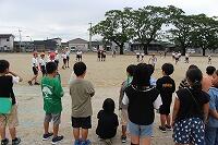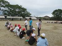 5校時は5・6年生がグラウンドに集まり全体で確認をした後