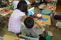 また、4年生は、7月に吉田醸造ケンコー食品工業株式会社の吉田様の御指導のもと、自分たちで作った味噌を使って味噌汁を作っていました。味噌は、みやだいずを使っており、子どもたちは、みやだいずの美味しさを十分に味わっているようでした。