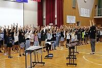 そのような中、4年生は、体育館で11月19日(火)に行われる市音楽大会に向けて体育館で学年練習を行っていました。子どもたちは、これまで各学級で音楽の時間に練習していますが、学級ごとに歌ったり、踊ったりとタイミングが違う場面があるため、学年全体でそろって歌うと歌に迫力が感じられます。また、練習では、学級ごとに歌って、他の学級の子どもたちからアドバイスをもらう姿も見られました。