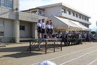 17日(木)の午前中、運動会の予行練習を行いました。練習では、プログラムに沿って開会式から閉会式までを行い、招集や用具準備、放送など係の連携などを確認しました。予行練習でしたが、団技やリレーなどの競技では、運動会本番さながらに頑張る子どもたちの姿が見られ、それぞれの団が大きな声で一生懸命応援していました。