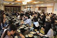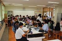 3年生は、学級ごとに各クラブの活動場所をまわって、クラブの部長や副部長から活動内容や魅力を説明してもらった後、先輩の活動の様子を見たり、実際に体験させてもらったりしていました。